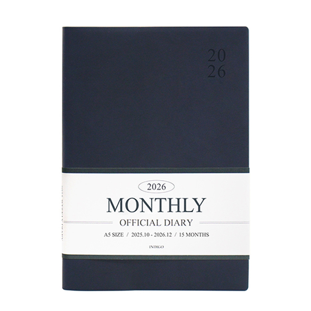 - 26년 인디고 다이어리 A5 먼슬리 25절 월간 네이비
