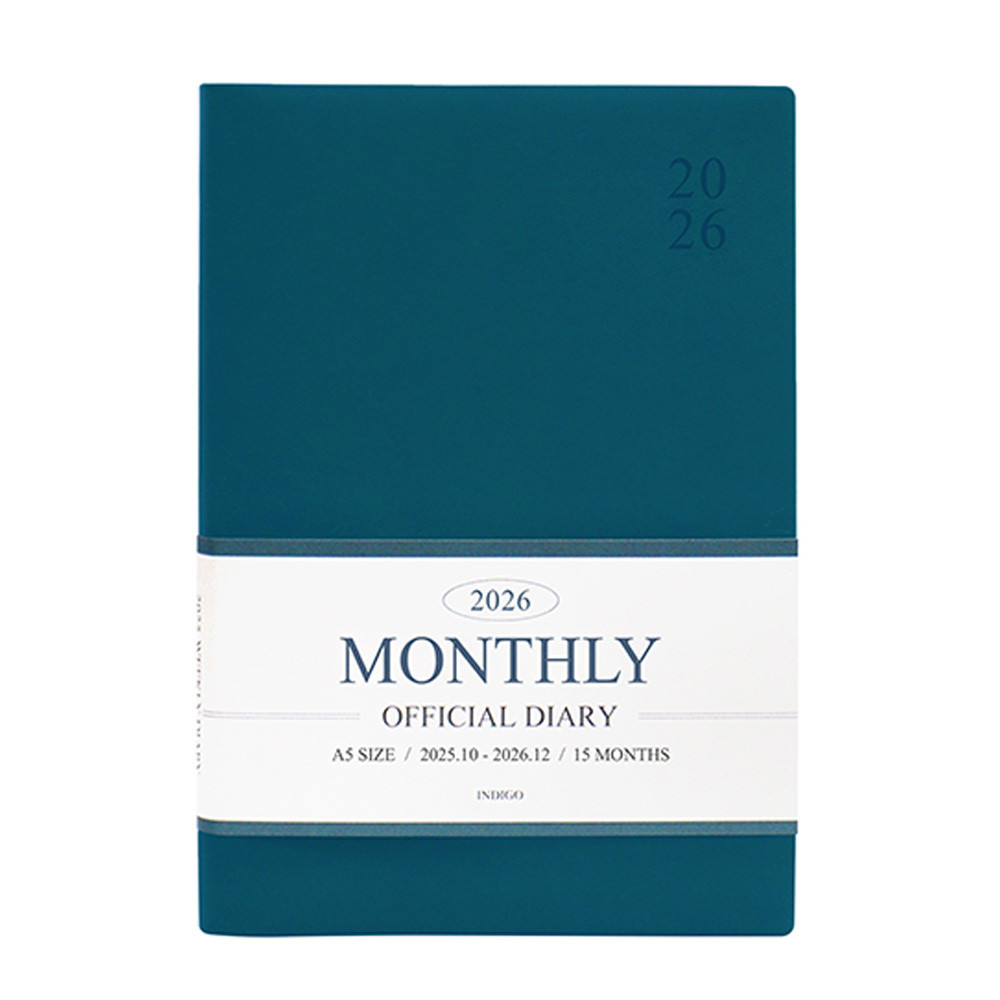 - 26년 인디고 다이어리 A5 먼슬리 25절 월간 피콕블루