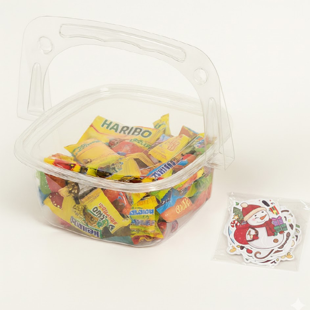 - 연말파티 간식선물 구성 투명바구니 크리스마스 스티커세트