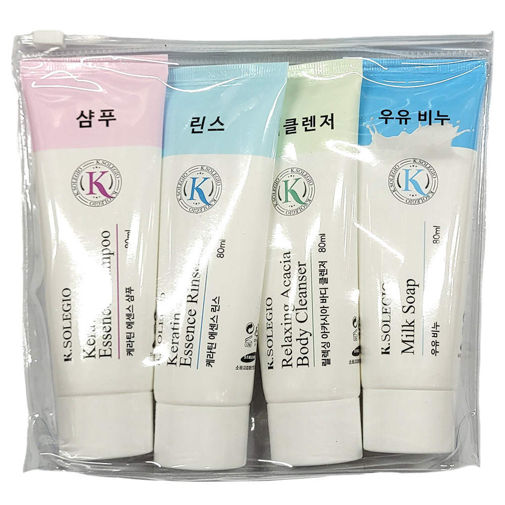- 샴푸 린스 바디클렌져 우유비누 간편 여행용 4종세트