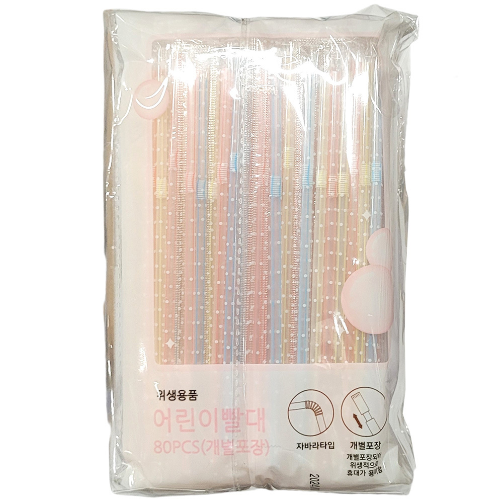 - 자바라타입 개별포장 휴대 용이 어린이 빨대 80P 10봉