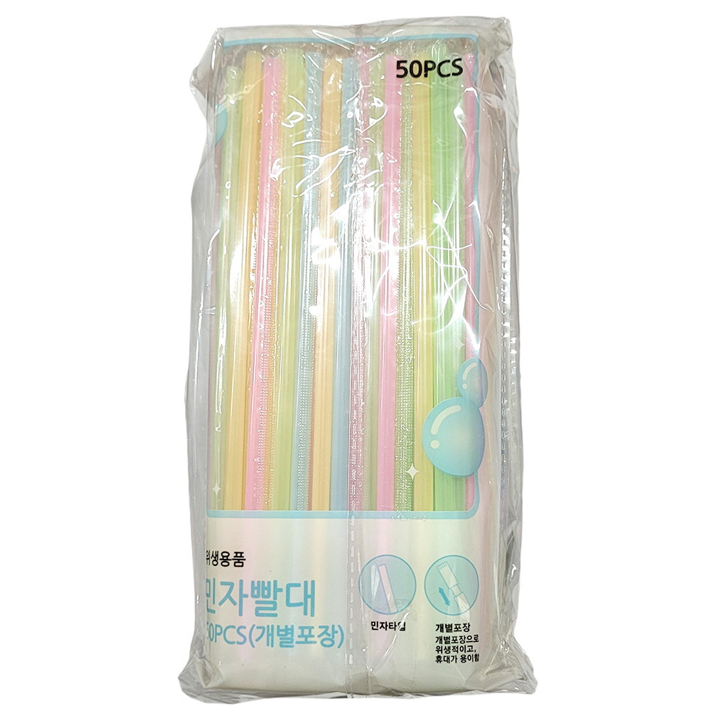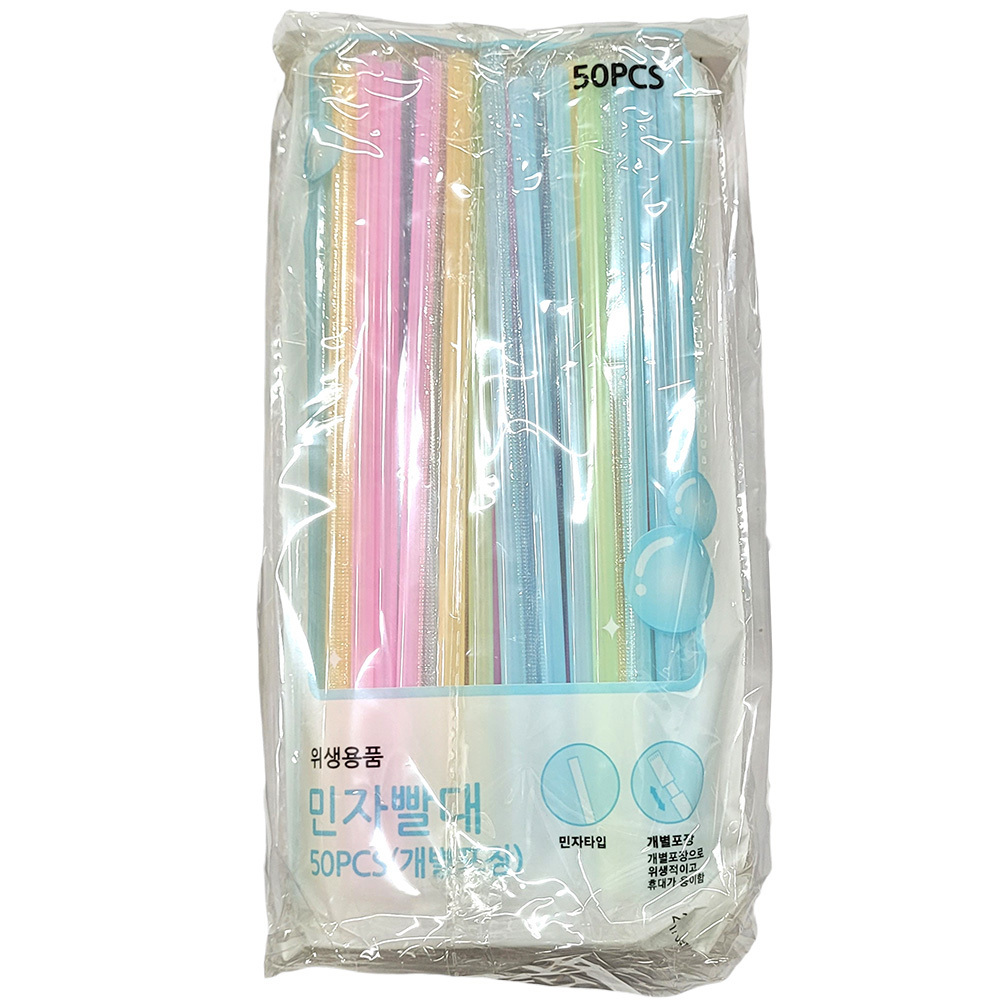 - 개별포장 위생적이고 휴대 용이한 민자 빨대 50P 5봉