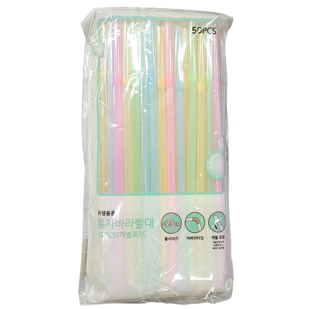- 개별포장 위생적 자바라타입 롱사이즈 빨대 50P 5봉