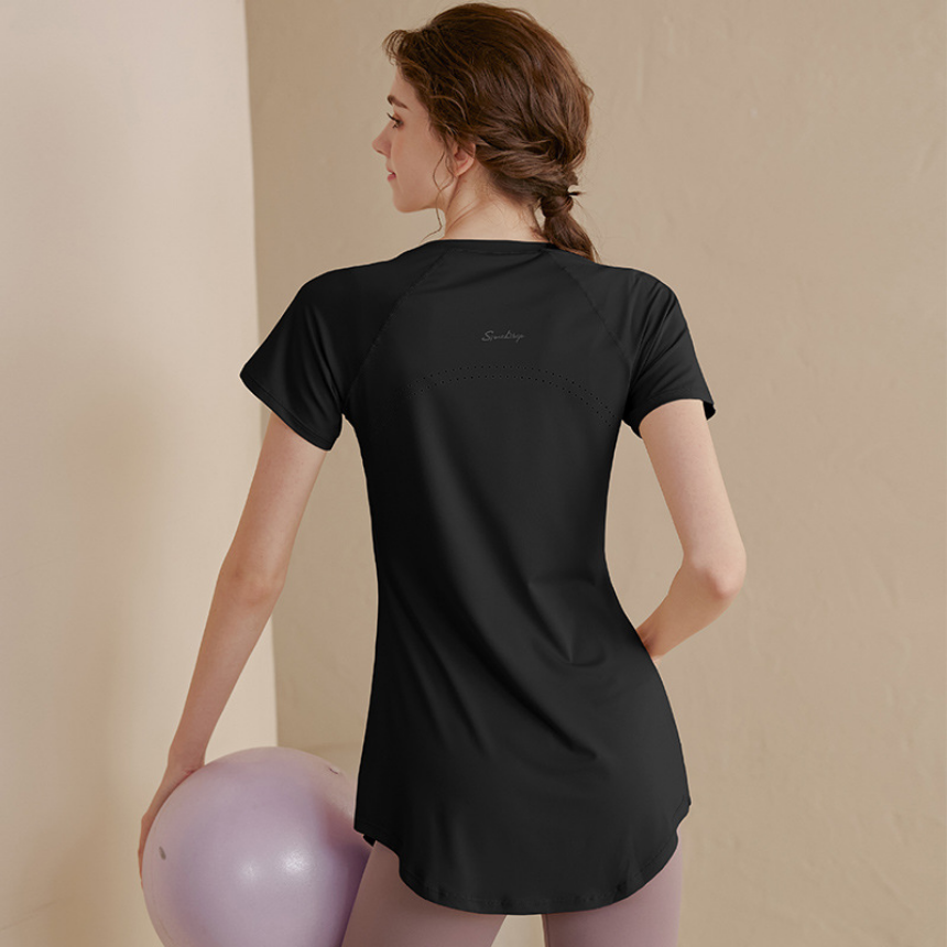 - 휴앤핏 힙커버 요가 필라테스 롱기장 스포츠 반팔 티셔츠 운동복