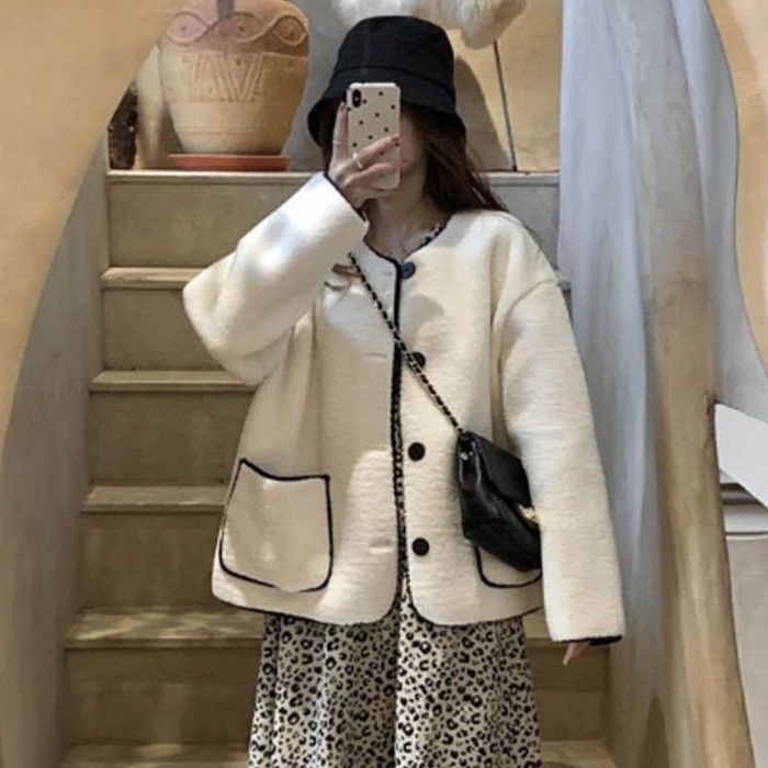 - 여성 퍼 가디건 단추 뽀글이 자켓 부드러운 촉감