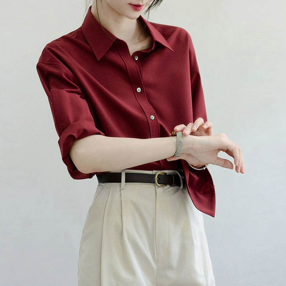 - G126967_고급스럽고 우아한 새틴 루즈핏 셔츠블라우스 공단카라셔츠