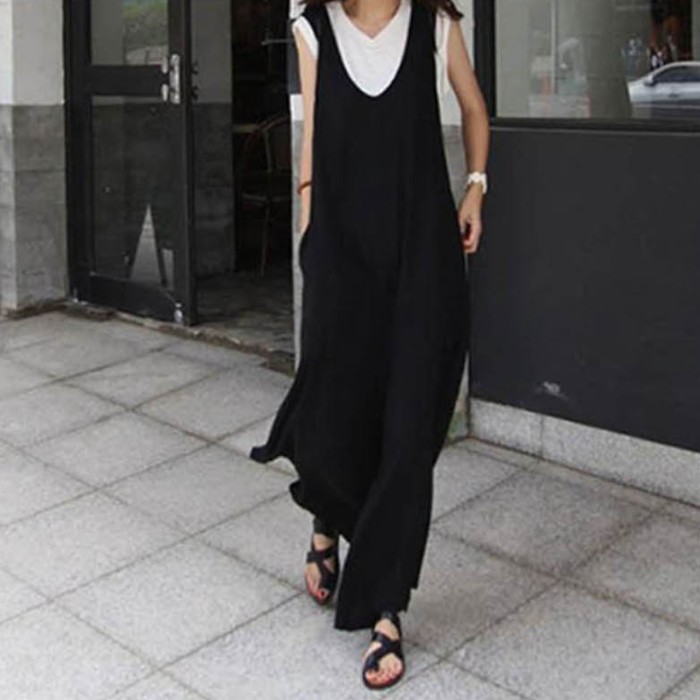 - 여리여리 패션 멜빵팬츠 트렌디한 점프슈트 유넥라인
