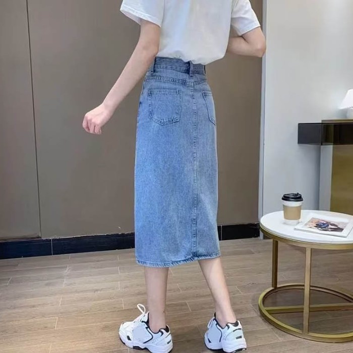 - 깔끔한 데님 스커트 옆절개 청치마 캐주얼 나들이룩