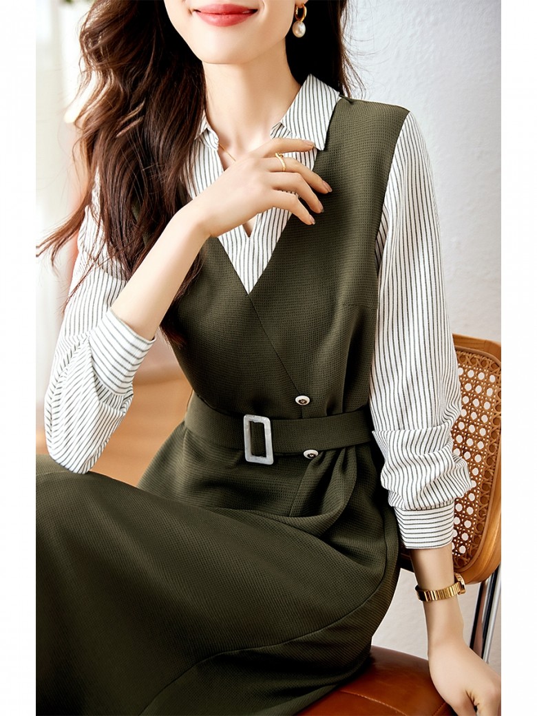 - F302520 점프슈트 느낌 V넥 셔츠코디 데일리 원피스 출근 하객룩