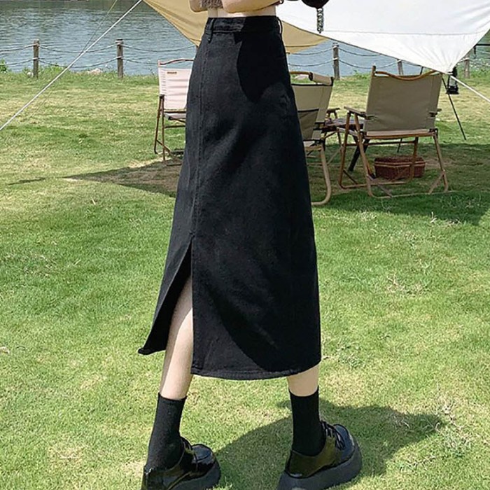 - 블랙진 치마 모던 무지 롱 스커트 날씬한 실루엣