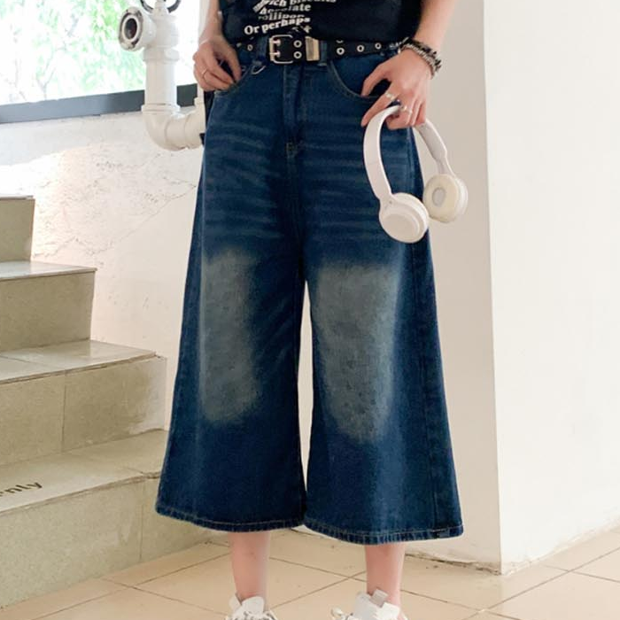- 와이드핏 7부바지 트렌디한 데님팬츠 빈티지한 패션
