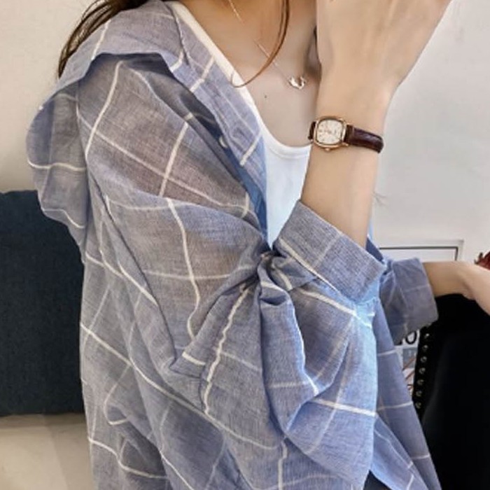 - 트렌디 후드 셔츠 체형커버 가능한 격자무늬 롱 가디건