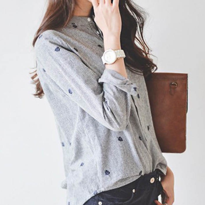 - 단정하고 캐주얼한 긴팔 남방 노카라 자수 셔츠