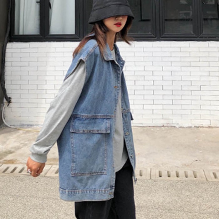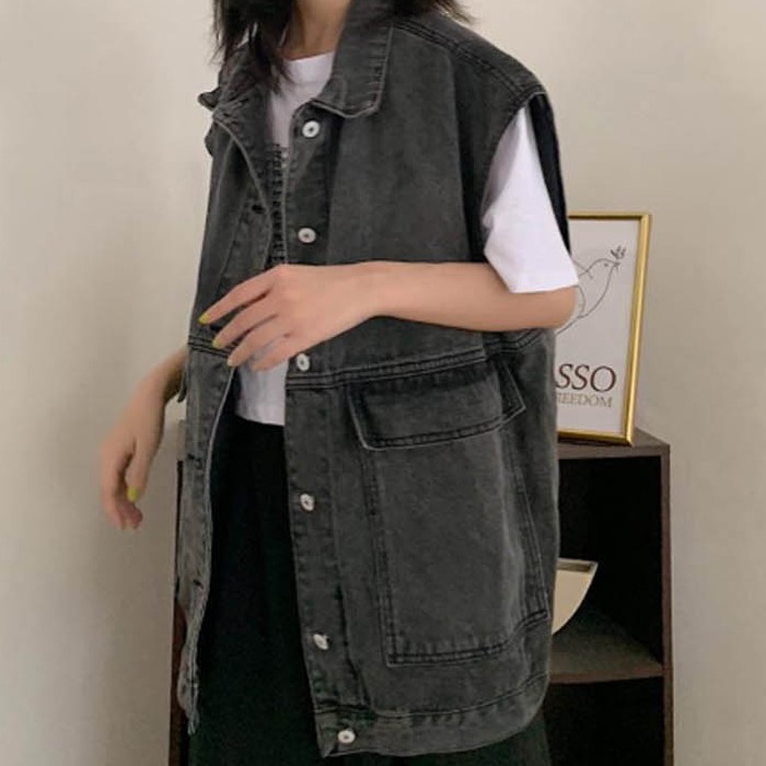 - 루즈핏 캐주얼 베스트 레이어드 워싱 청조끼 간절기