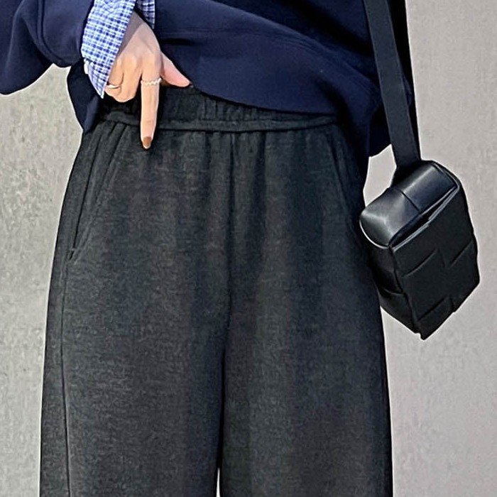 - 두께감 기모 밴딩 여자 와이드 바지 팬츠