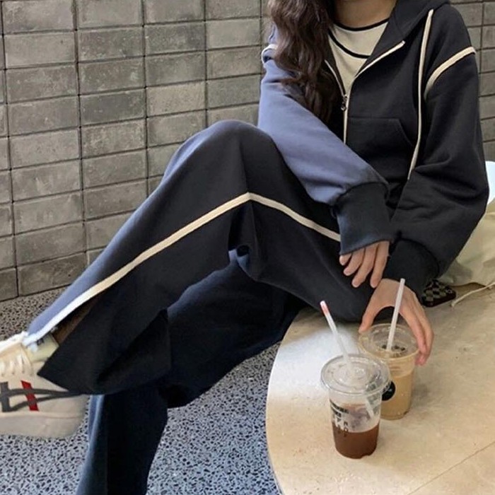- 여성 트레이닝복 세트 트렌디한 투웨이 집업셋트 밑단 트임