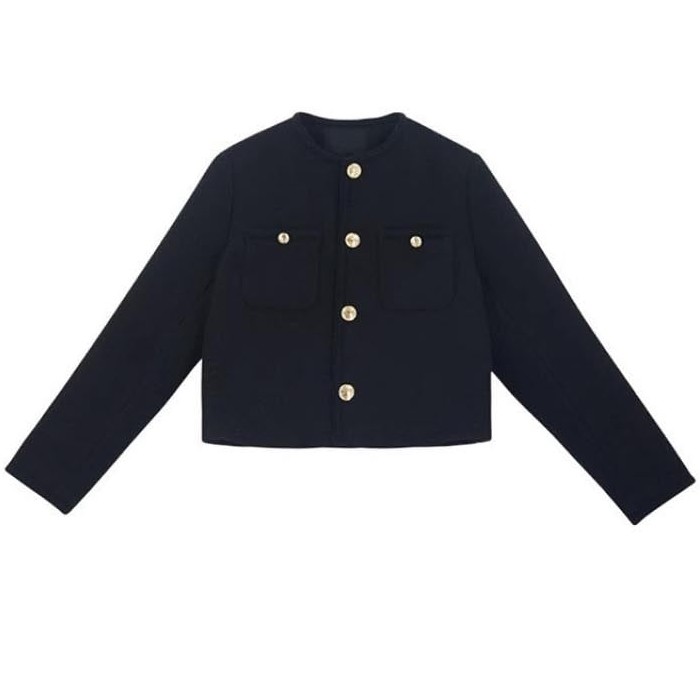 - 숏 트위드 자켓 크롭 스타일 재킷 봄가을 노카라 디자인