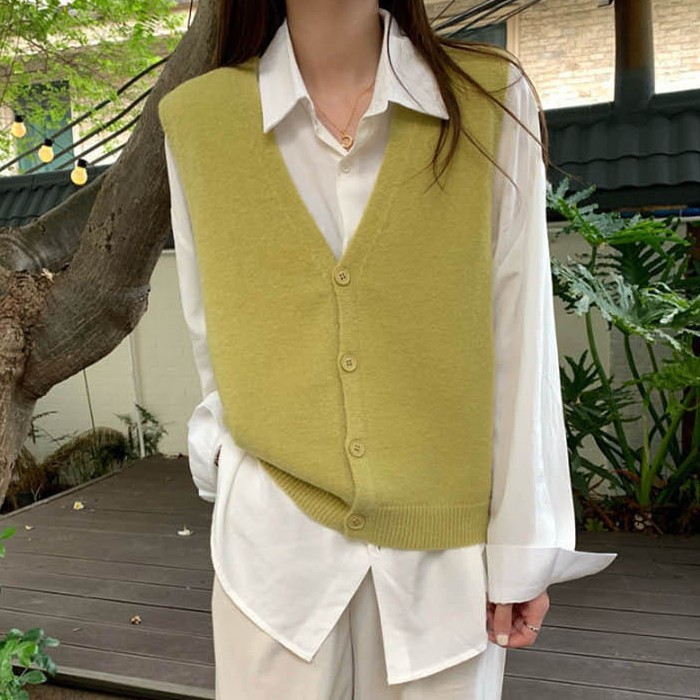 - 단추 니트 조끼 브이넥 니트 베스트 오픈 클로징