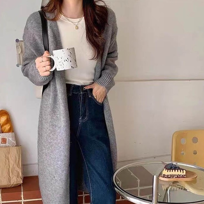 - 여성 니트 가디건 아우터 오픈형 포근 롱 로브