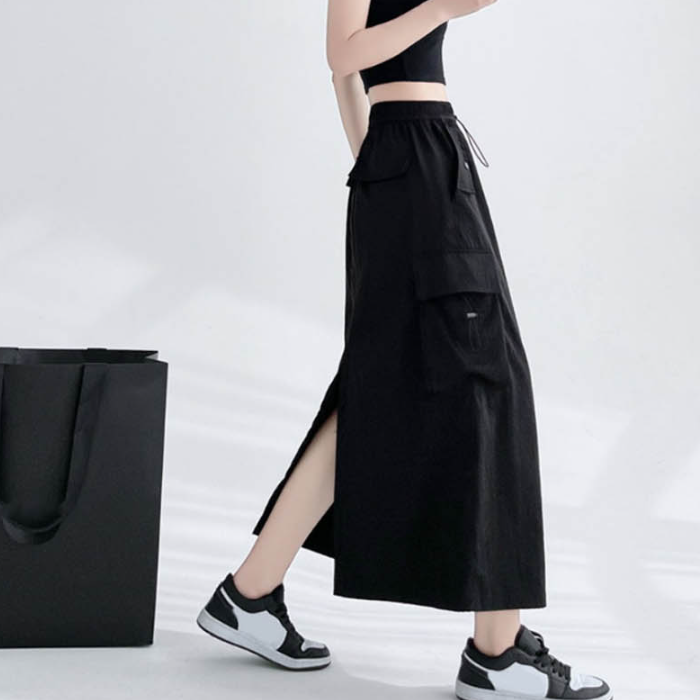 - 힙한 카고포켓 캐주얼 여성 스커트 밴딩 롱치마