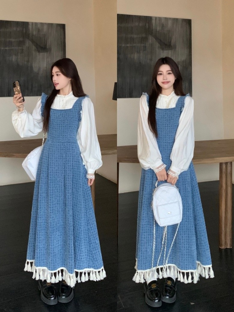 - F4950 치마 바지 롱 멜빵 데님 청 원피스 점프수트