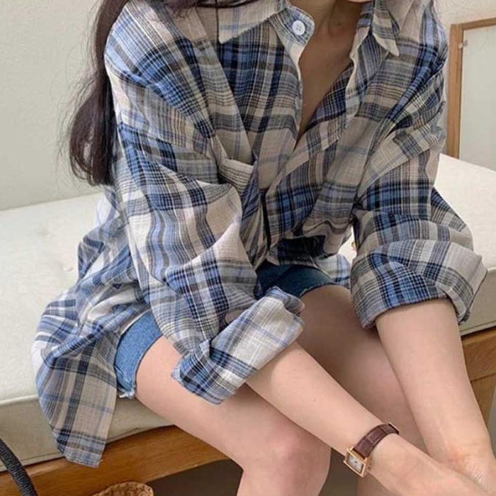 - 여성 레이어드 셔츠 오버핏 체크남방 체형커버 패션