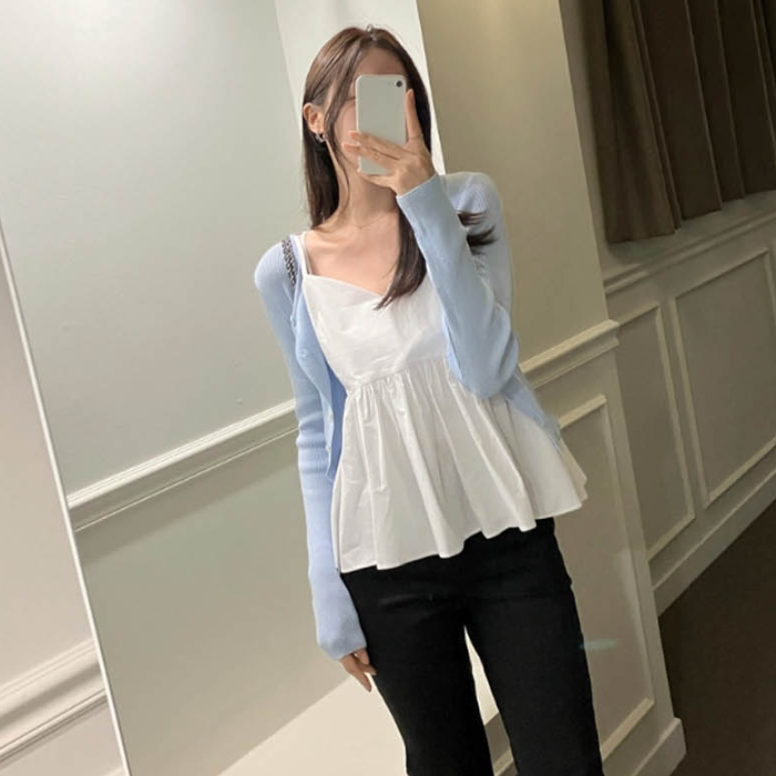 - 페미닌한 무드 여름 뷔스티에 프릴 끈나시 블라우스