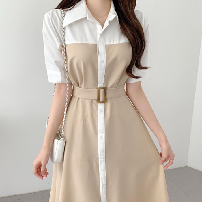 - 여성 하객룩 벨트 슬림하고 단정한 셔츠 원피스