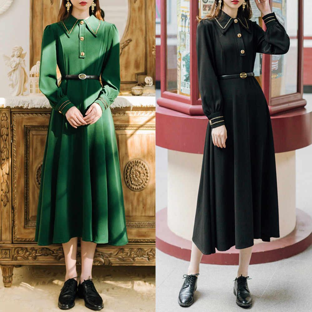 - (대여)프렌치 금장버튼 빅카라 긴팔 원피스(2color).