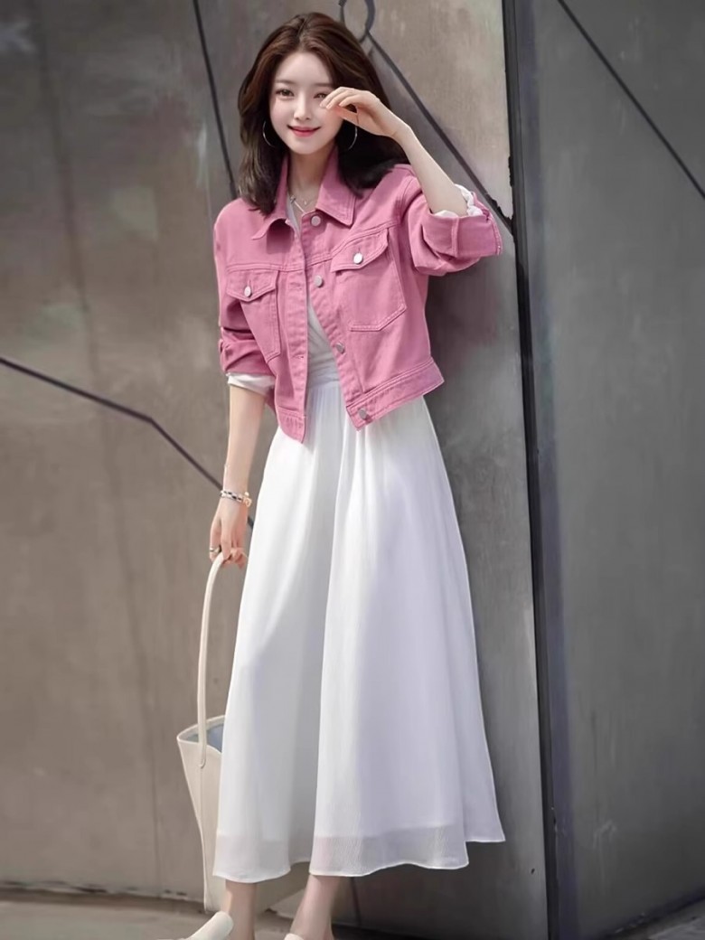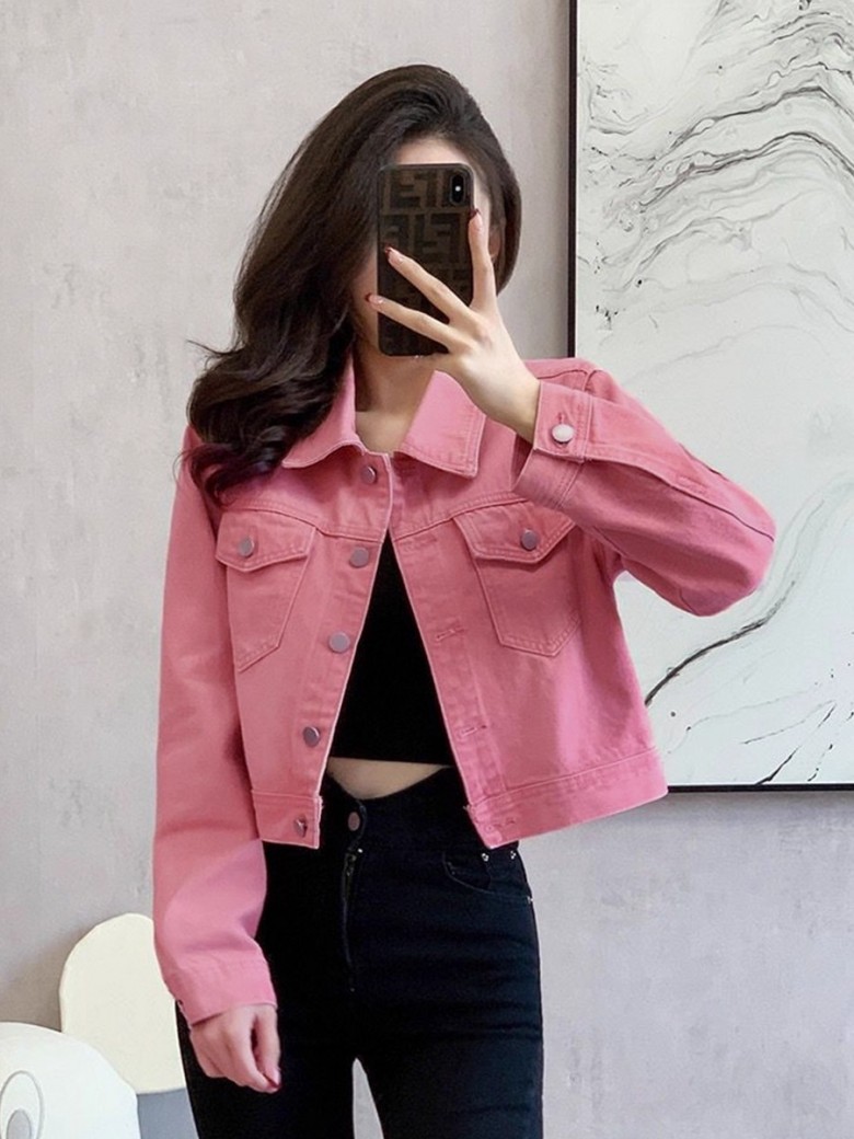 - LF34700 화사한 핑크 봄 가을 간절기 루즈핏 청 데님 재킷 자켓 아우터