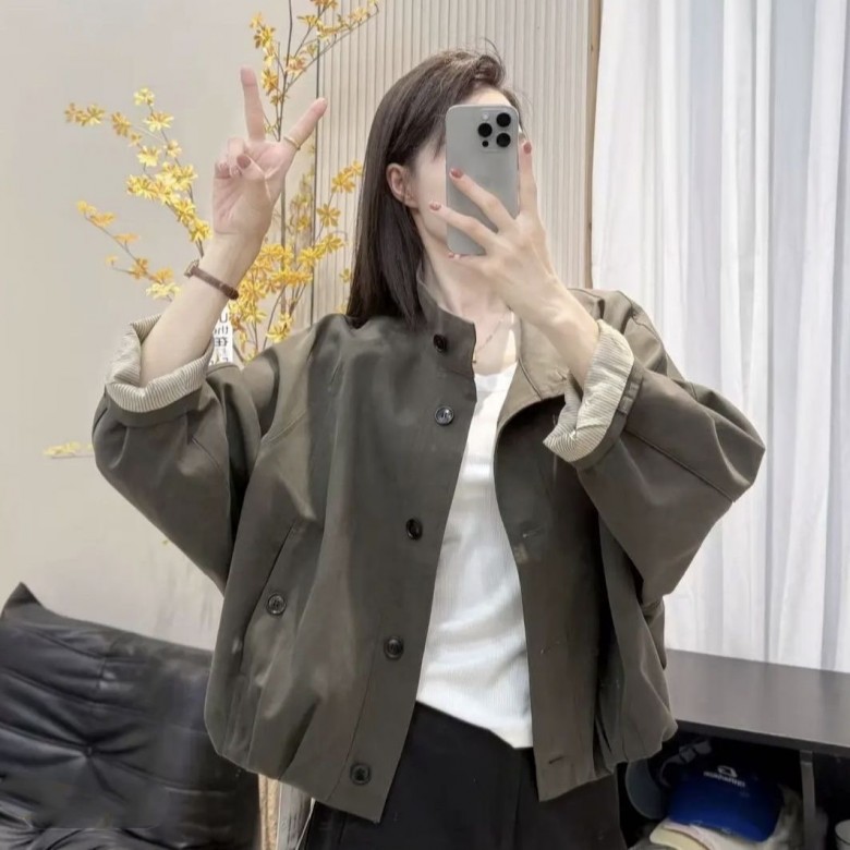 - F723631 홑겹 하이넥 숏 집업 점퍼 봄 가을 간절기 아우터 바람막이