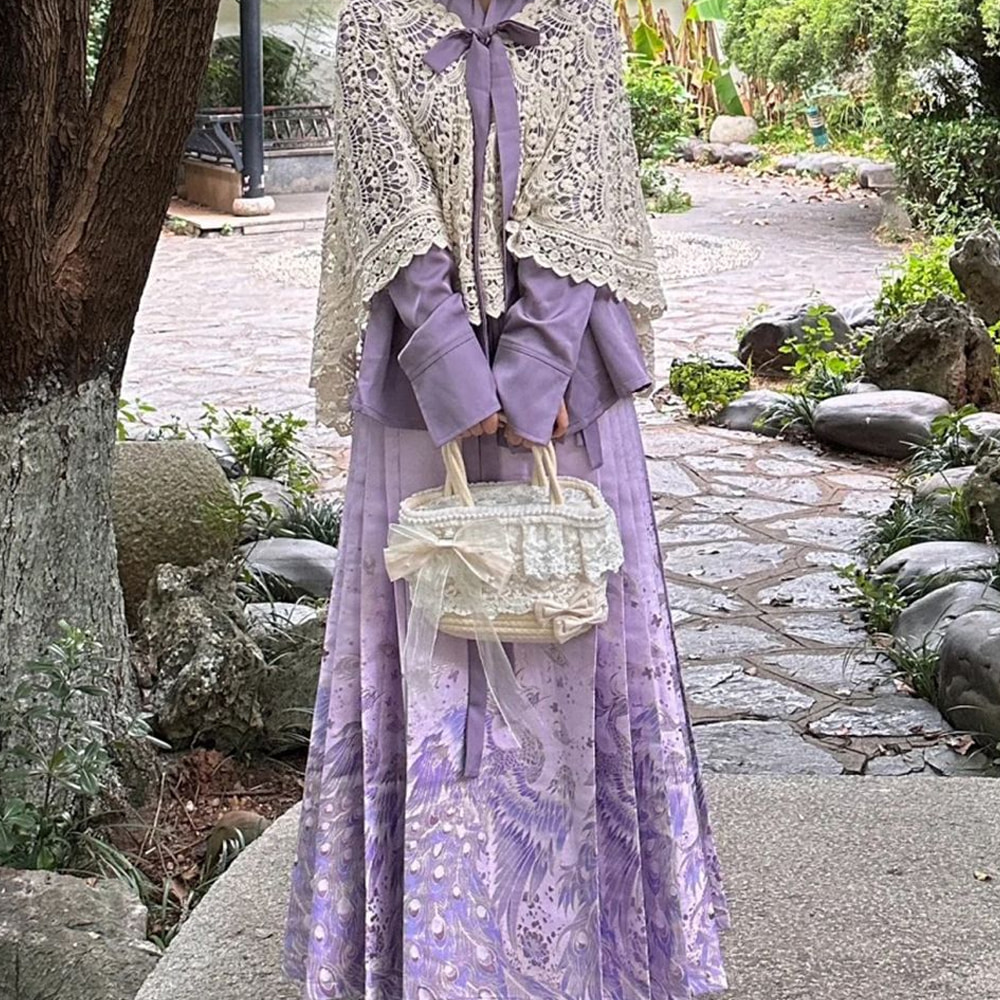 - 스프링 플라워 퍼플 의상세트(탑 숄 치마) 교복 학생.