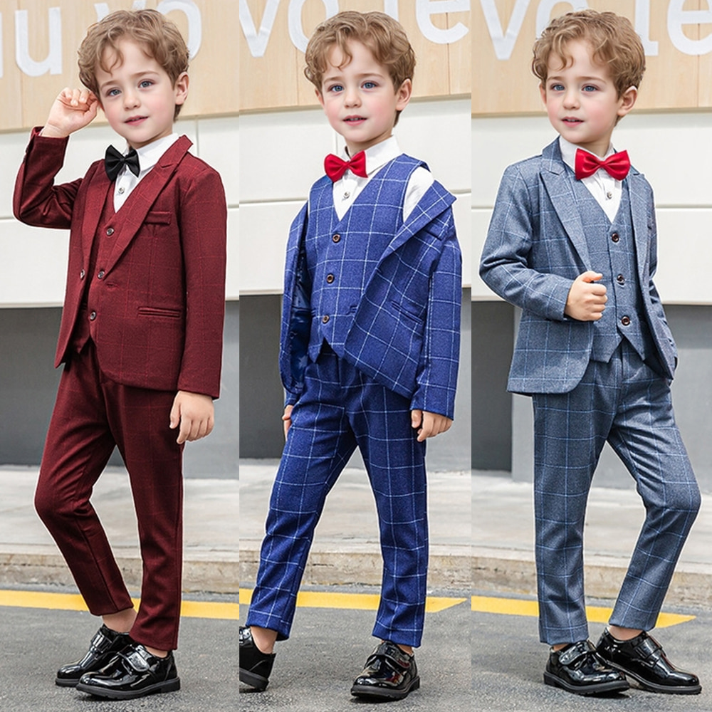 - 헤링본 체크패턴 소년 정장 턱시도 풀세트(자켓 양장.