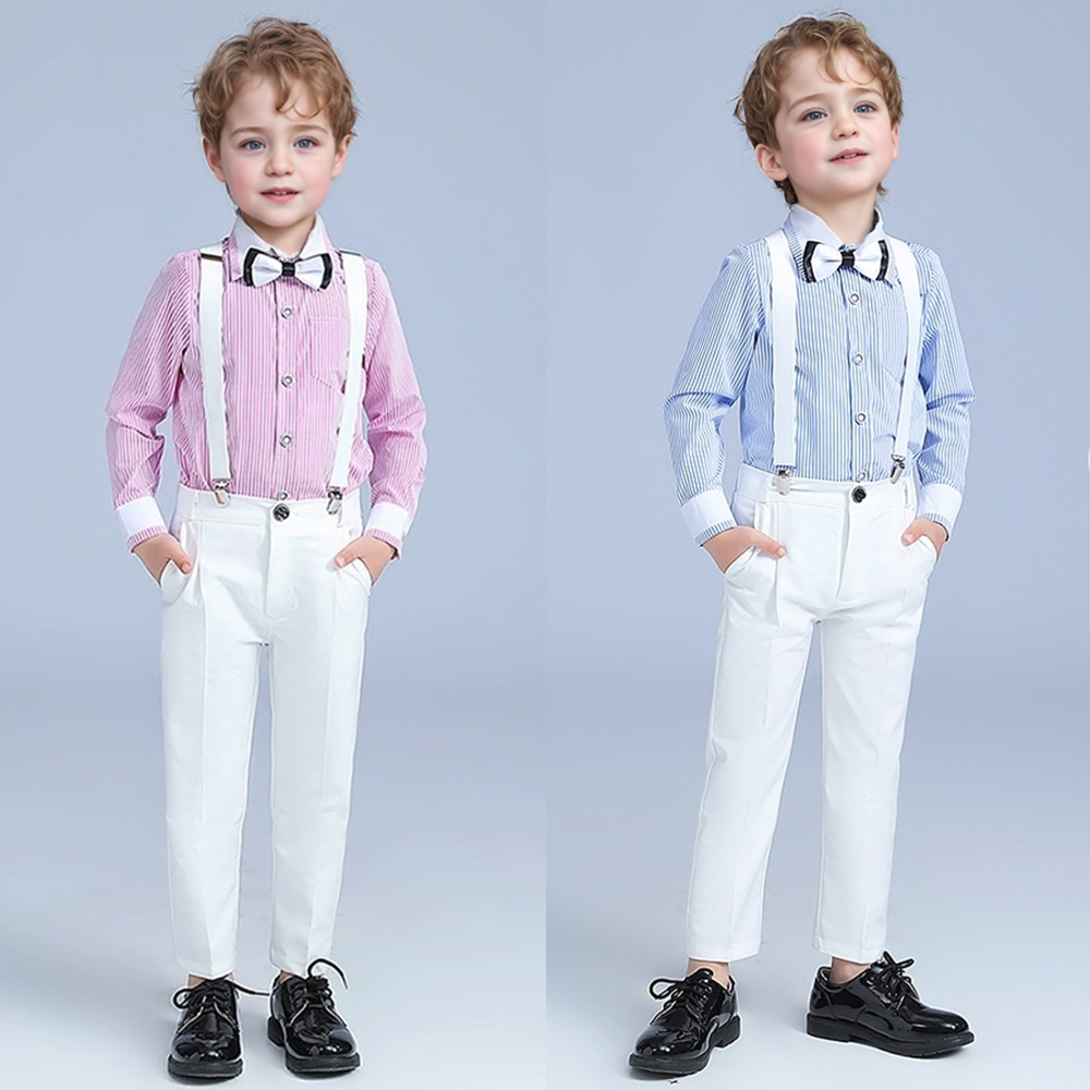- 벤자민 세로스트라이프 멜빵바지 교복세트(셔츠 타이.