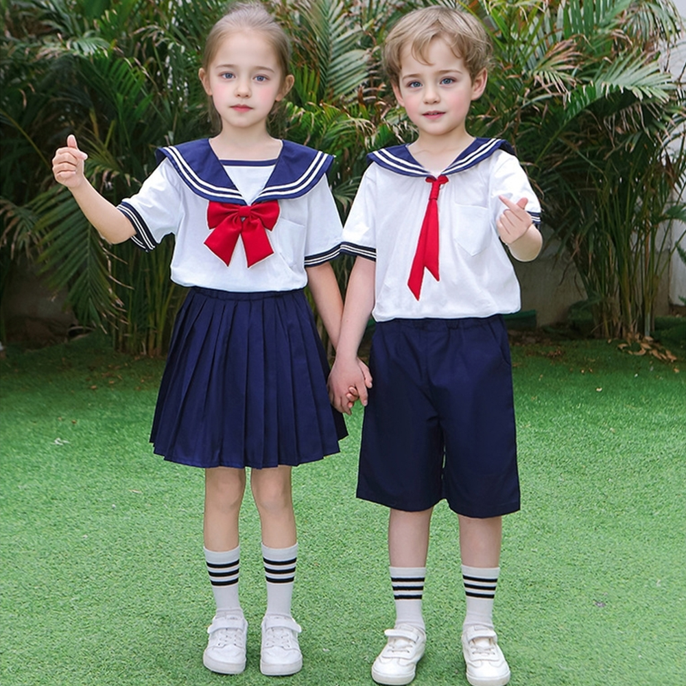 - 두줄라인 네이비 반팔마린 교복세트(셔츠 타이 하의.