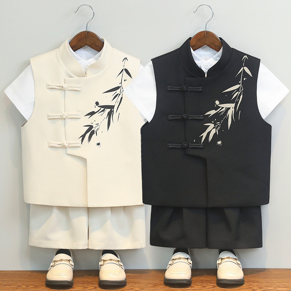 - 브레스티드 반팔 반바지 대나무 자수 턱시도 정장세.