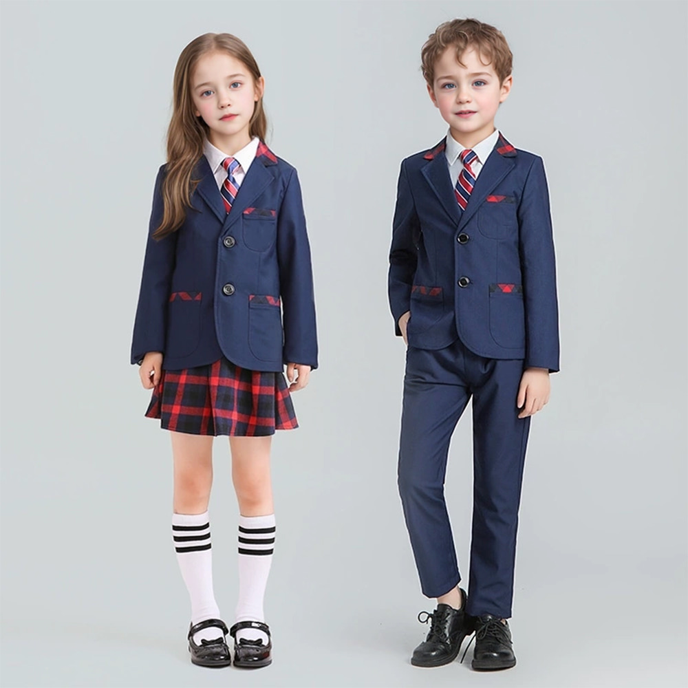 - 투버튼 네이비 레드체크라인 교복세트(자켓 셔츠 타.