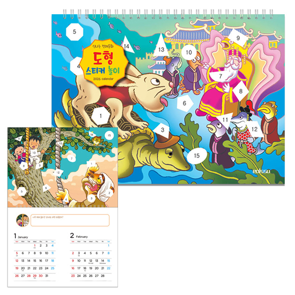 - 2026년 신나는 전래동화 도형 스티커 놀이 달력
