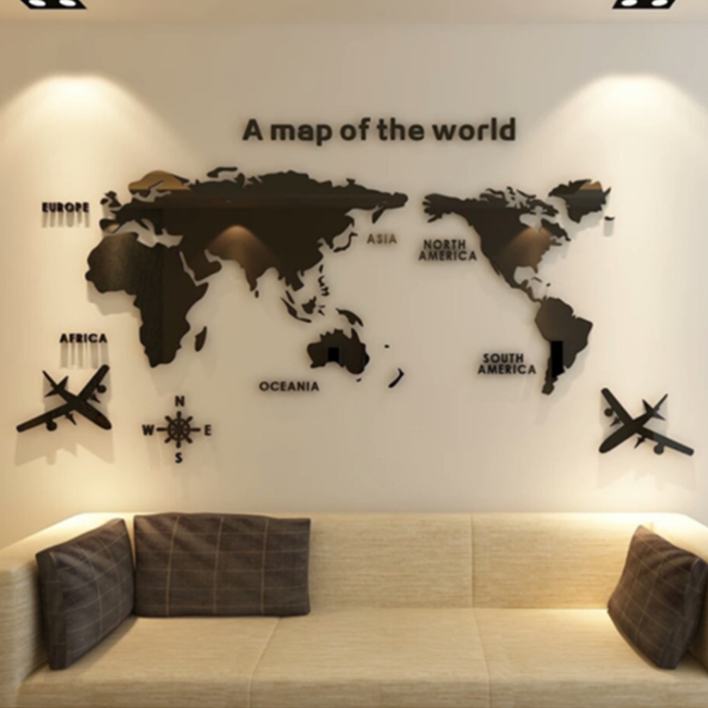 - [테이프 제공] 대형 아크릴 입체 세계지도 벽장식 스티커 거실 사무실 인테리어 지도 영어학…