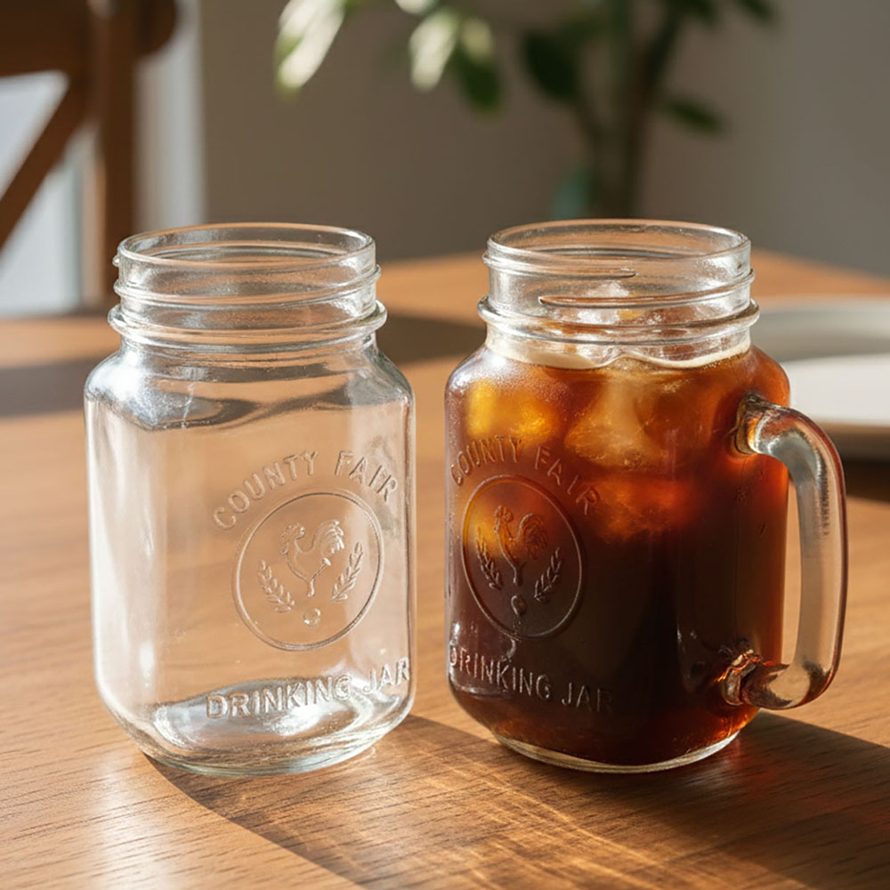 - 투명 손잡이 레트로 원형 유리컵 400ml