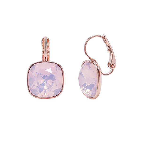 - esg2167 12mm 로즈 오팔 사각 오스트리아 크리스탈 로즈골드 원터치 귀걸이