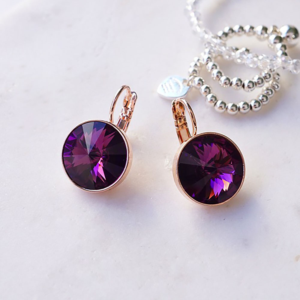 - 오스트리아 크리스탈로즈골드 14mm 아메시스트 귀걸이