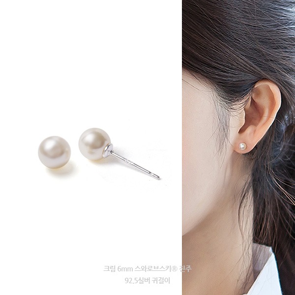- 6mm 크림 오스트리아 크리스탈 제작 진주 92.5실버 귀걸이