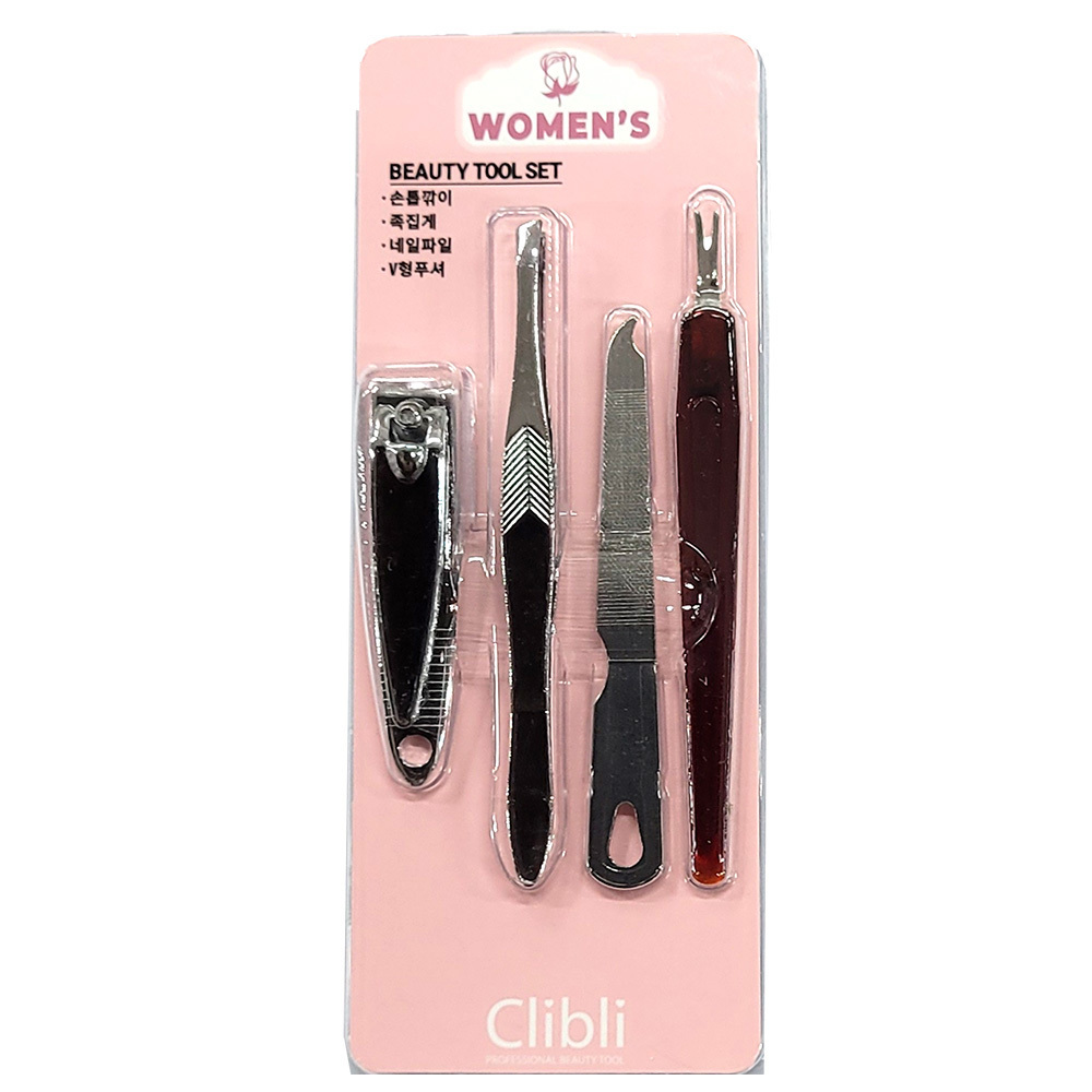 - 손톱가위 족집게 네일파일 V형푸셔 여성 미용세트 4입