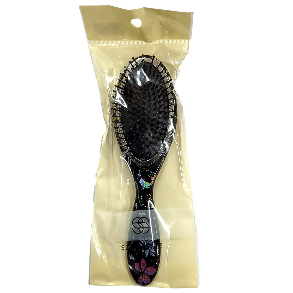 - 고급스러운 블랙플라워 타원 쿠션 헤어브러쉬 소