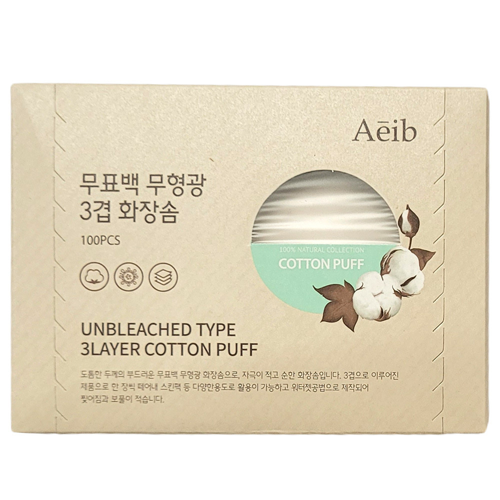 - 도톰한 두께 부드럽고 순한 무표백 3겹 화장솜 100매