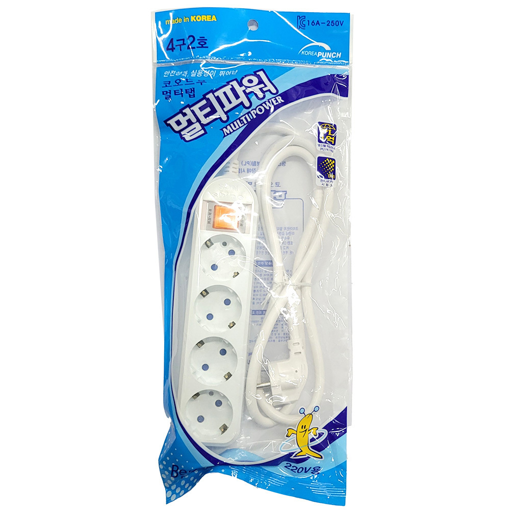 - 안전성과 실용성이 뛰어난 접지 멀티탭 4구 2호 1.5m