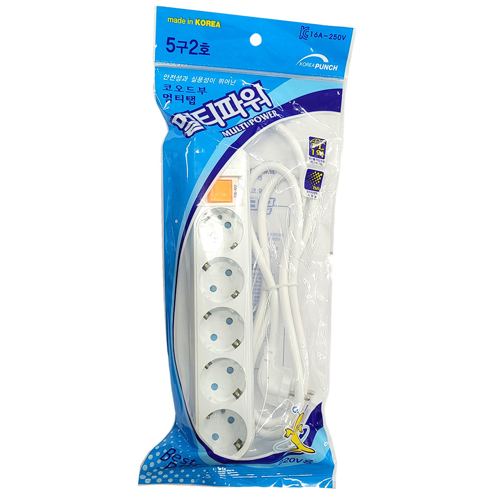 - 안전성과 실용성이 뛰어난 접지 멀티탭 5구 2호 1.5m