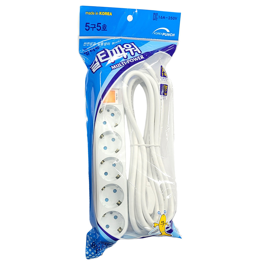 - 안전성과 실용성이 뛰어난 접지 멀티탭 5구 5호 4.5m