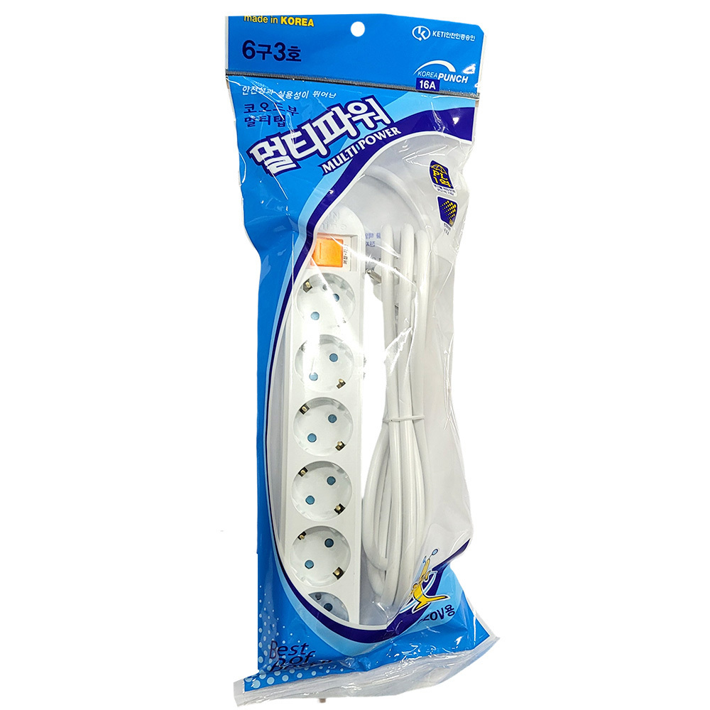 - 안전성과 실용성이 뛰어난 접지 멀티탭 6구 3호 2.5m